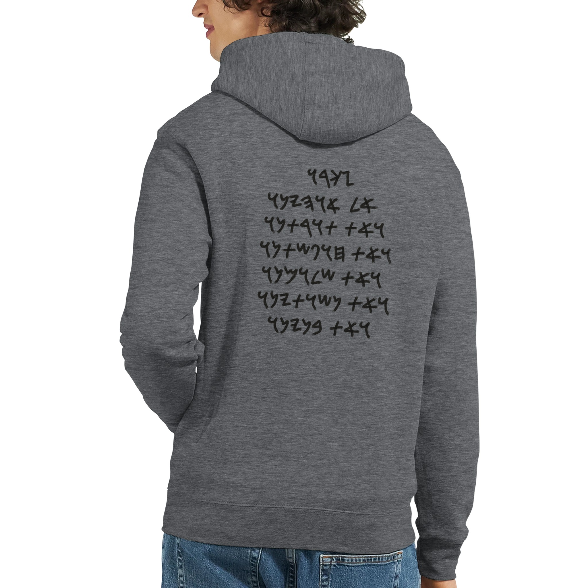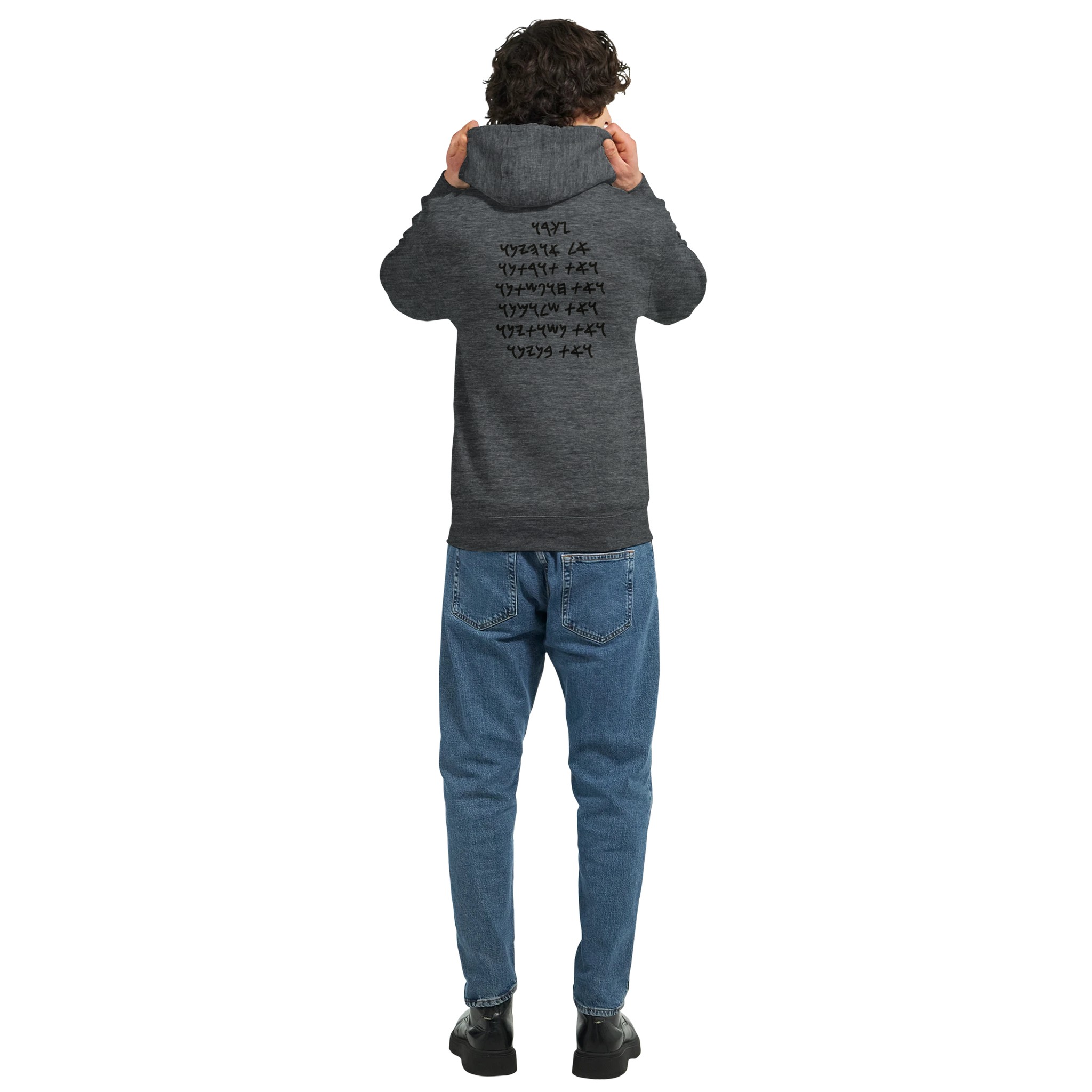 Moroni raised his anthem on the towers throughout the land, now you can wear it proudly upon your back. Written in Paleo Hebrew, this comfortable hoodie can serve as a reminder of the faith and devotion of the ancient Nephite Captian. On the front breast are two characters found on the “Caracters document” which possibly translate to “tribe of the son” or “the tribe of Christ”